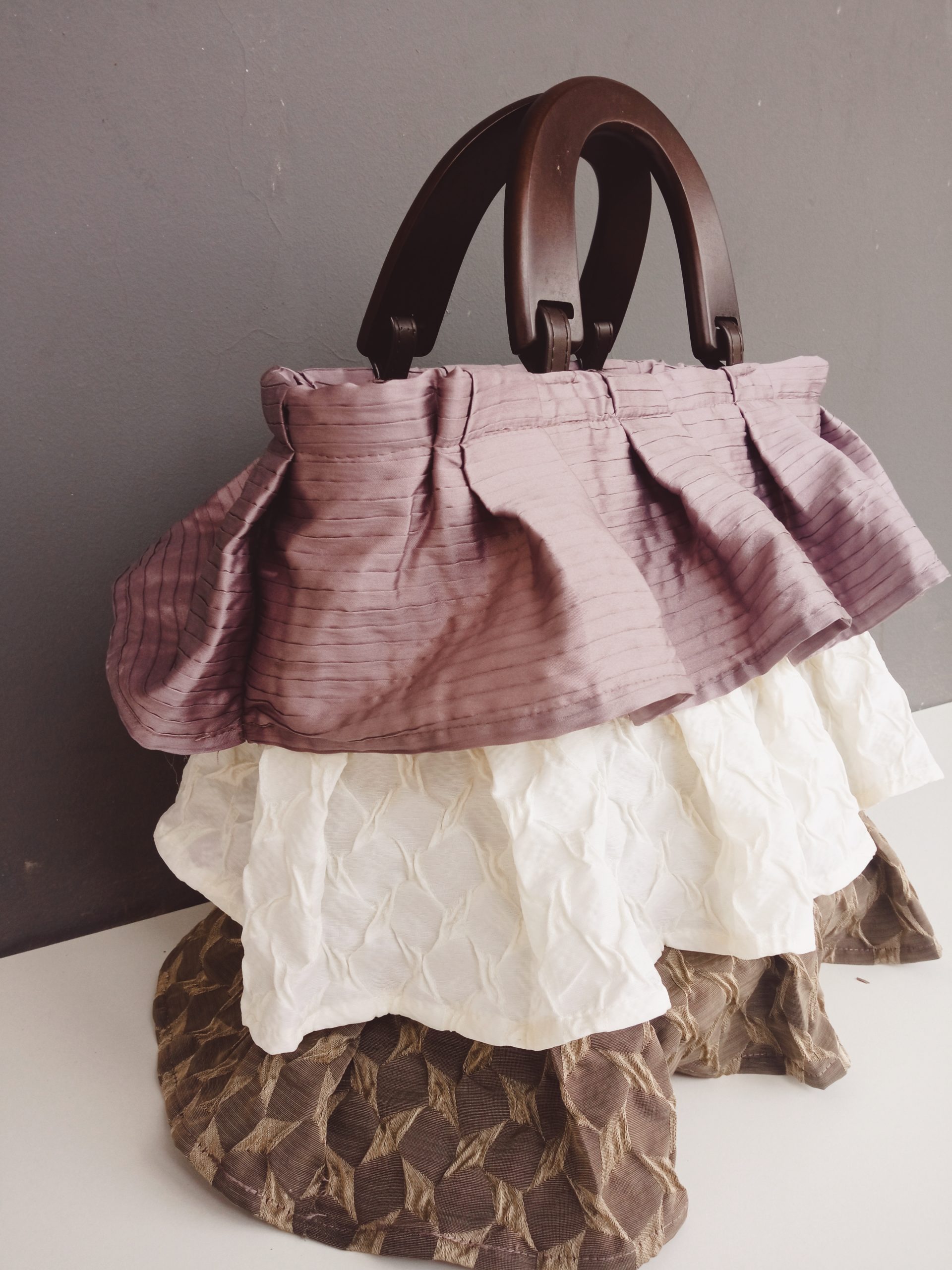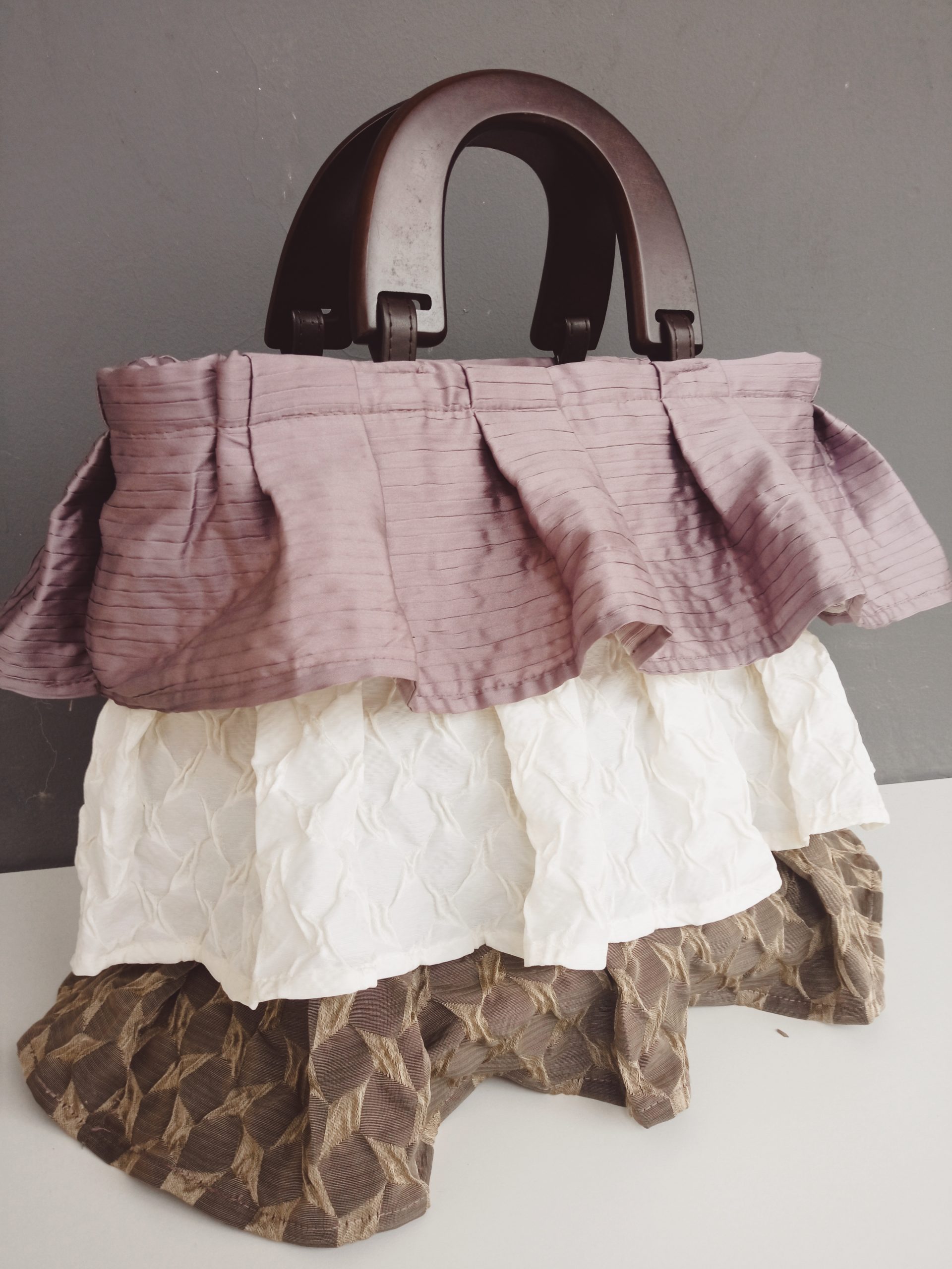 Bolso con armazón de yute con interior forrado .Exterior con volantes de colores .