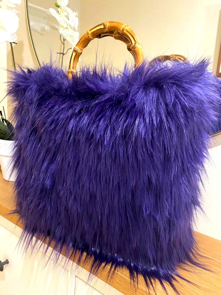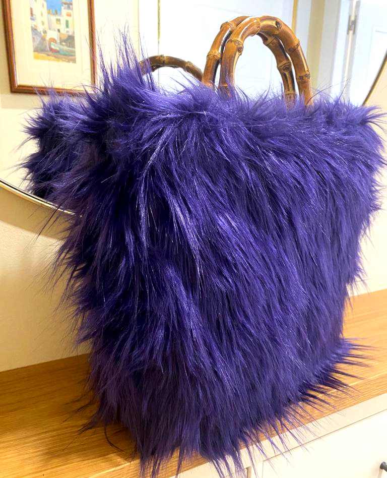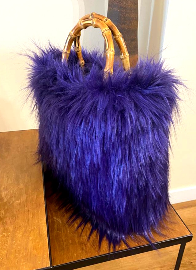 Bolso realizado con pelo sintético y asas de bambú.