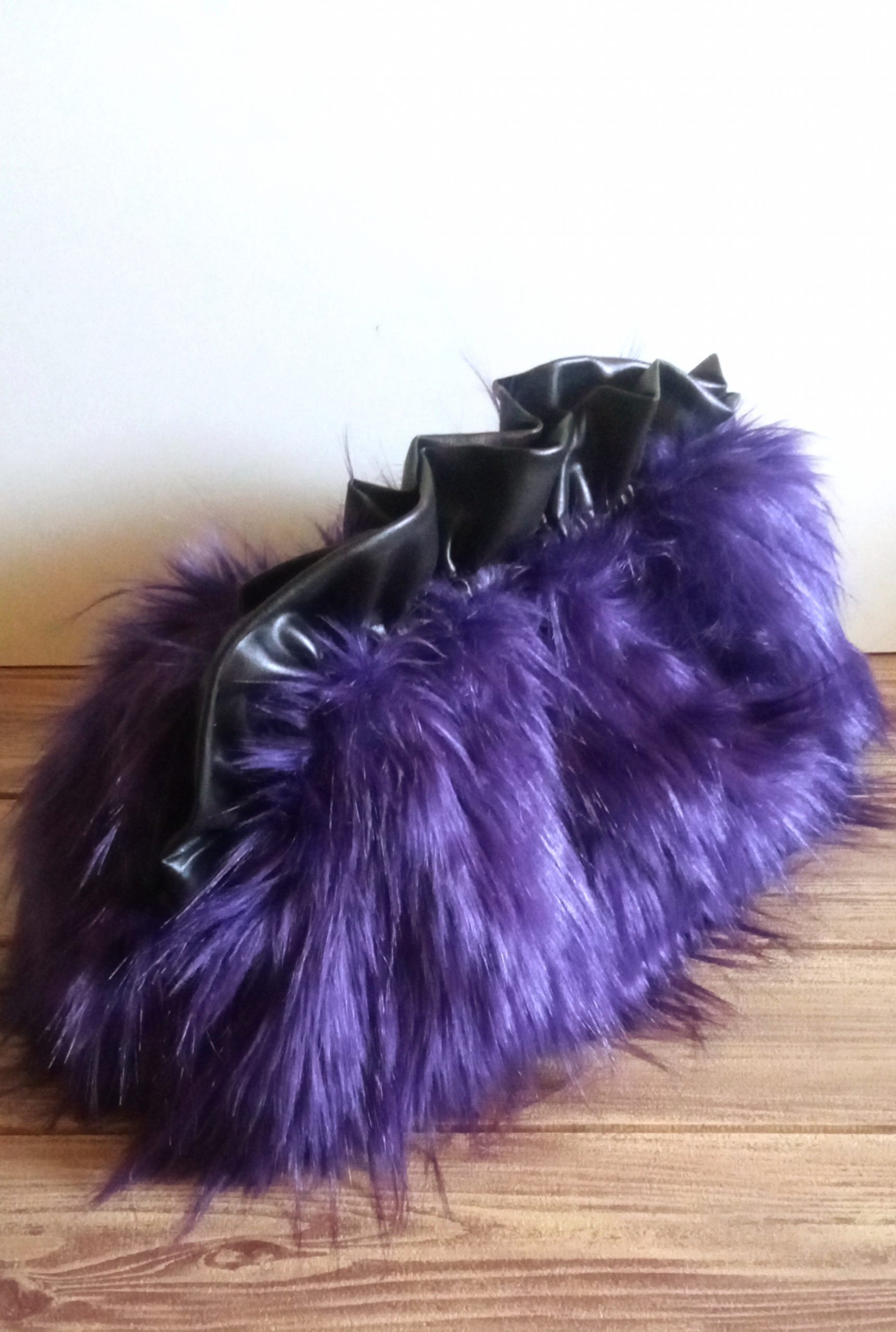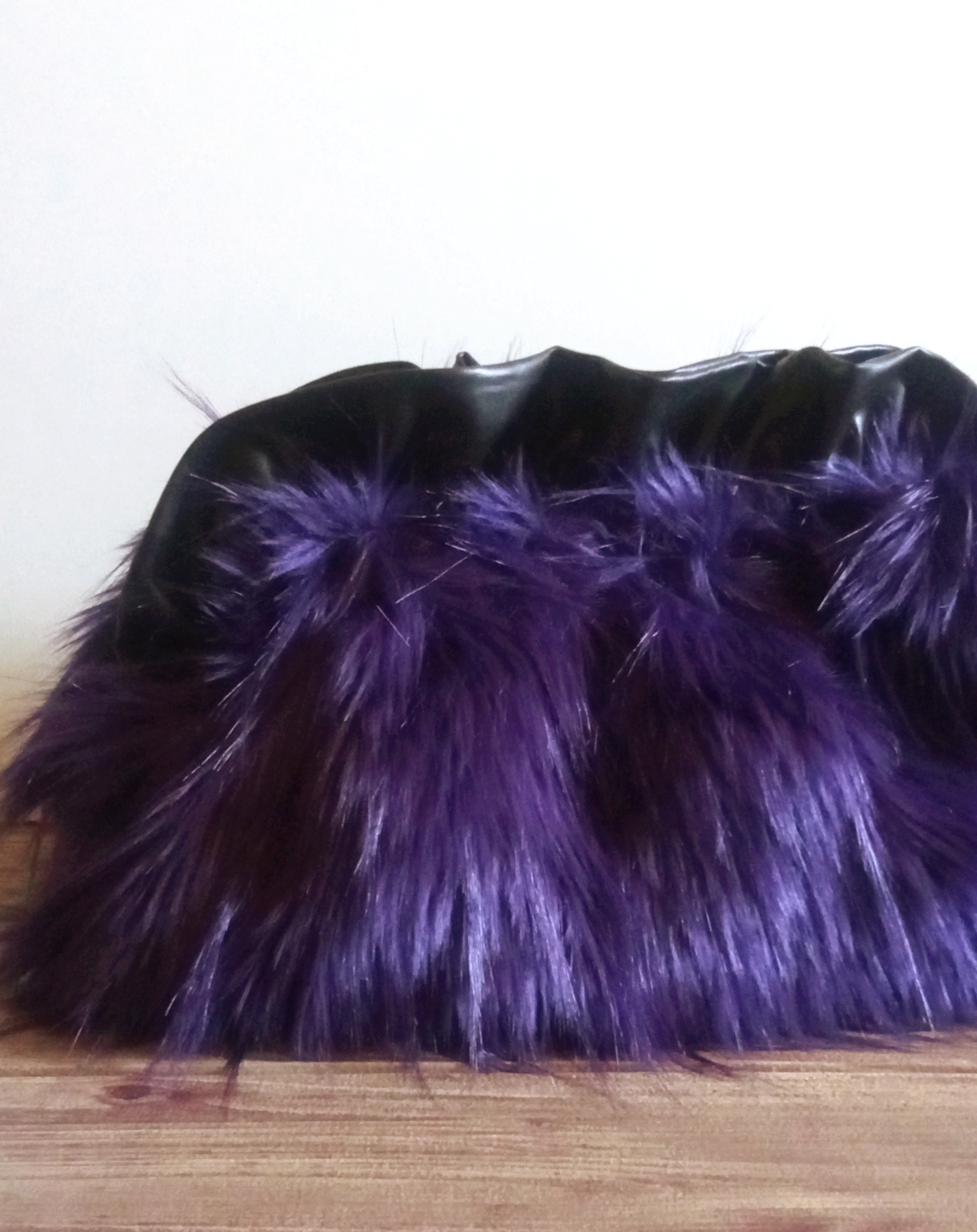 Bolso realizado con pelo sintético y asas de bambú.