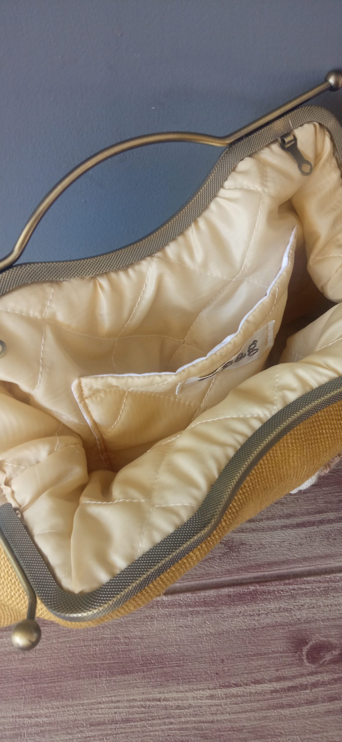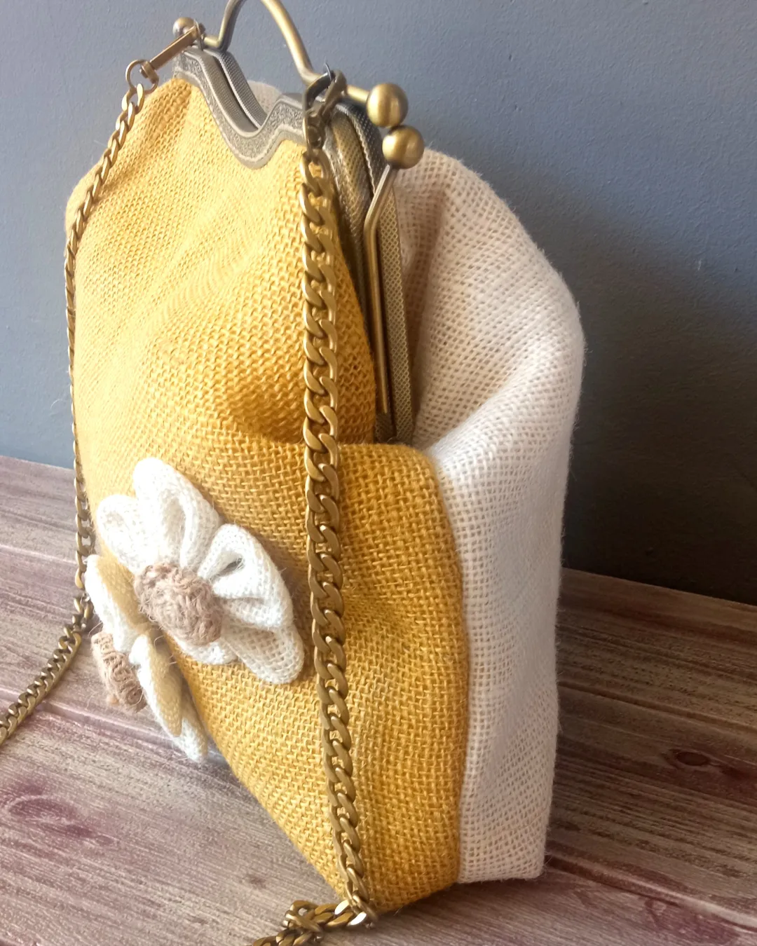 Bolso realizado en tejido de yute  y forro acolchado. Se pueden personalizar tejidos y colores.